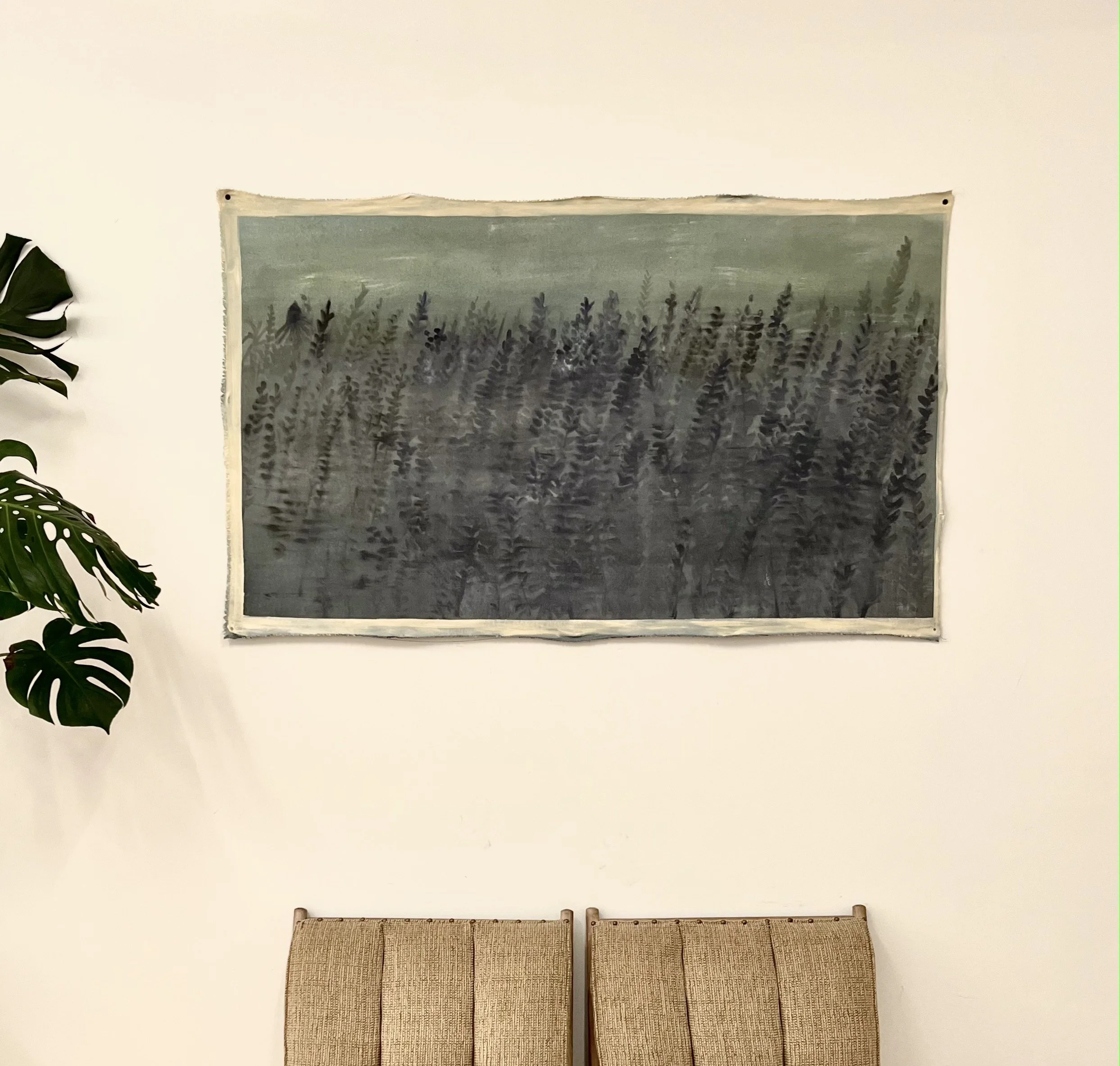 This subject matter, while it is completely universal, is what has helped me better understand my own personhood, experiences and memories, and gives me insight to how I have come to be in the world, how I want to continue to be, and how I want to grow and transform. The specific imagery I return to in my work, is a product of growing up in an urban setting, constantly moving from apartment to apartment, bringing certain precious objects along the way, and each time in turn leaving some behind. I grew up going to visit the farms that my parents grew up on, which was a landscape that terrified me, as it was deeply unfamiliar to a child that grew up in the city. My earliest memories are of standing in 8 foot weeds, on my grandfathers 500 acre Iowa farm, terrified of getting lost in what felt like an endless void, or getting eaten by the hundreds of cicadas that would drone out a call for help. I was both terrified and mesmerized by this landscape when I was a kid. It was not what was directly familiar to me- but it was my families landscape, and the very things that terrified me about it, were deeply comforting to them. As a grew up, learning that i have a familial predisposition for severe mental health imparities, the 8 foot weeds made more sense. My grandfather was not able to take care of the farm, let alone himself. I was better able to understand this when as a young adolescent, I was deeply struggling to take care of myself as well. Understanding that environment has helped me better understand myself and my family. I have continued to understand myself through my relationship with the spaces i inhabit, I travel through, I find comfort and familiarity, curiosity and fear. The landscape I sit in, often mirrors the landscape of my subconscious. Through exploring these spaces I am better able to make sense of the fields of weeds, gardens and rooms filled with precious objects- that constitute my psyche.
